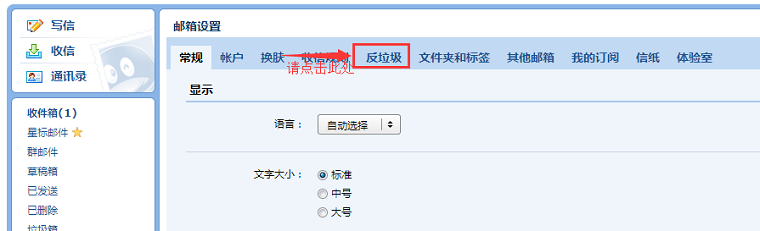 3.点击“反垃圾”进入设置页面